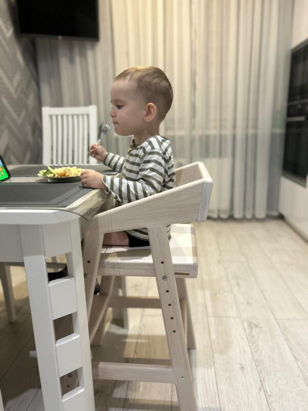 При переходе от стульчика к обычному обеденному столу у ребенка развиваются социальные навыки (общение, взаимодействие, наблюдение за взрослыми), навыки самообслуживания (самостоятельное пользование столовыми приборами), улучшается мелкая моторика и координация движений, а также формируется ощущение принадлежности к семье и происходит адаптация к обычной еде.